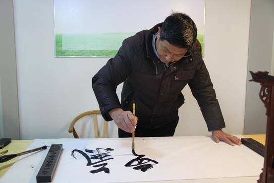 老人在文化小棧練習(xí)書法